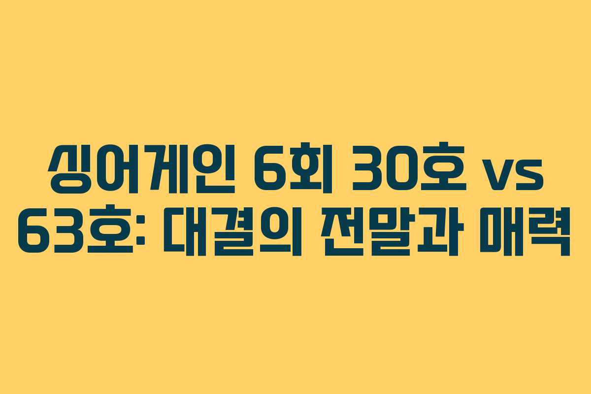 JTBC 예능 프로그램 ‘싱어게인’의 6회에서는 3라운드 지옥의 라이벌전이 펼쳐졌습니다. 특히, 두 참가자 30호와 63호의 맞대결은 많은 이들의 이목을 집중시켰습니다. 이날 방송은 긴장감 넘치는 순간으로 가득 찼습니다.