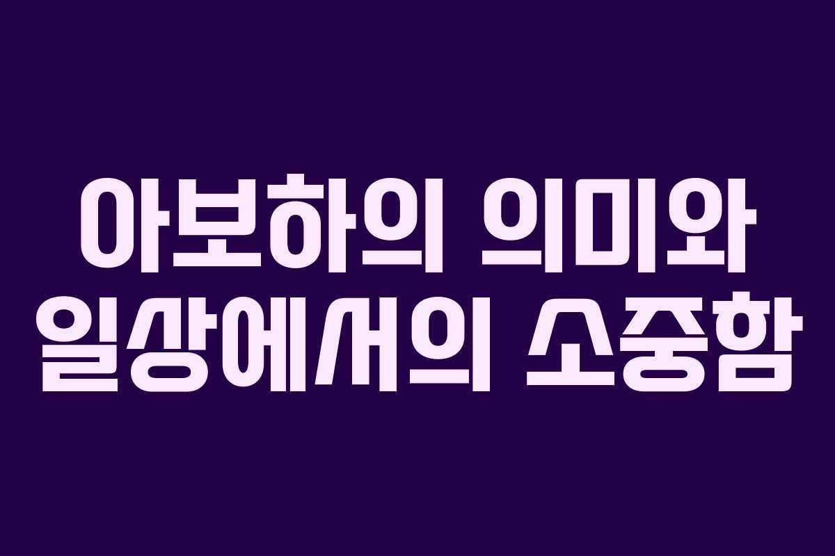 아보하는 그 자체로 매우 긍정적인 의미를 지니고 있습니다. 우리는 종종 일상이 지루하고 반복적이라고 느끼지만, 이러한 보통의 하루가 사실은 가장 소중한 것일 수 있음을 깨닫게 됩니다. 매일의 삶에서 소중한 순간들을 발견하는 것이 얼마나 중요한지를 일깨워주는 단어입니다.