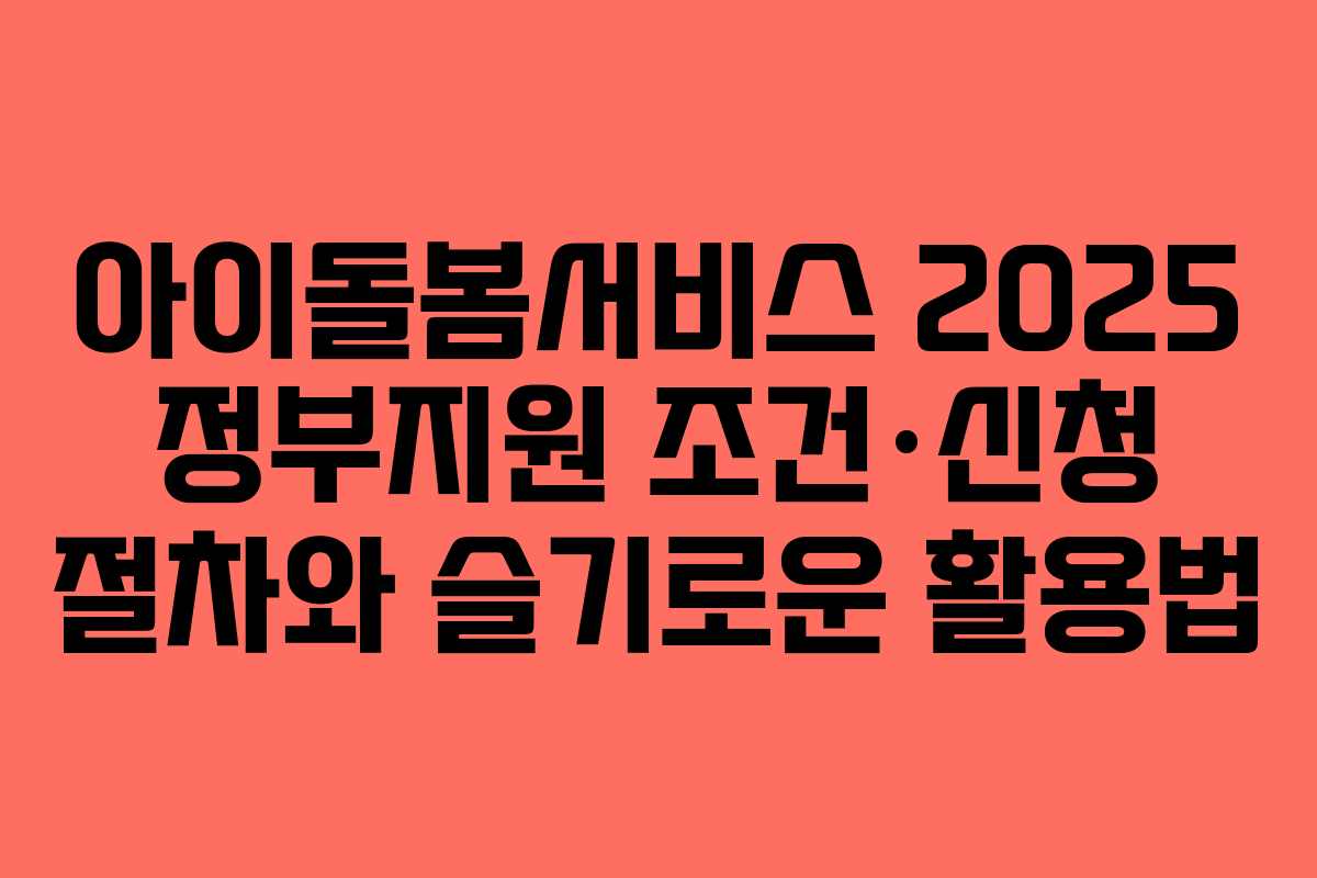 아이를 키우는 부모님들은 바쁘고 지친 일상 속에서 종종 도움이 필요할 때가 있습니다. 특히 맞벌이 가정에서는 양육 공백이 생길 경우, 아이를 안전하게 돌봐줄 수 있는 방법을 찾는 것이 중요합니다. 정부의 ‘아이돌봄서비스’는 이러한 부모님들에게 필요한 지원을 제공하고자 만들어진 제도입니다. 이번 글에서는 2025년의 아이돌봄서비스 정부지원 내용과 신청 절차, 활용법에 대해 자세히 알아보겠습니다.