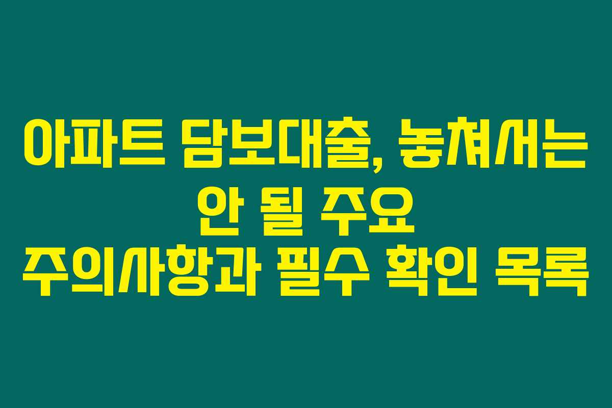 아파트 담보대출은 큰 결정을 요하는 중요한 금융거래입니다. 그렇기 때문에 잘못된 판단 하나가 큰 위험을 초래할 수 있습니다. 이 글을 통해 아파트 담보대출에서 주의해야 할 점들을 꼼꼼히 짚어볼 것이니, 반드시 끝까지 읽어보시면 좋겠습니다.