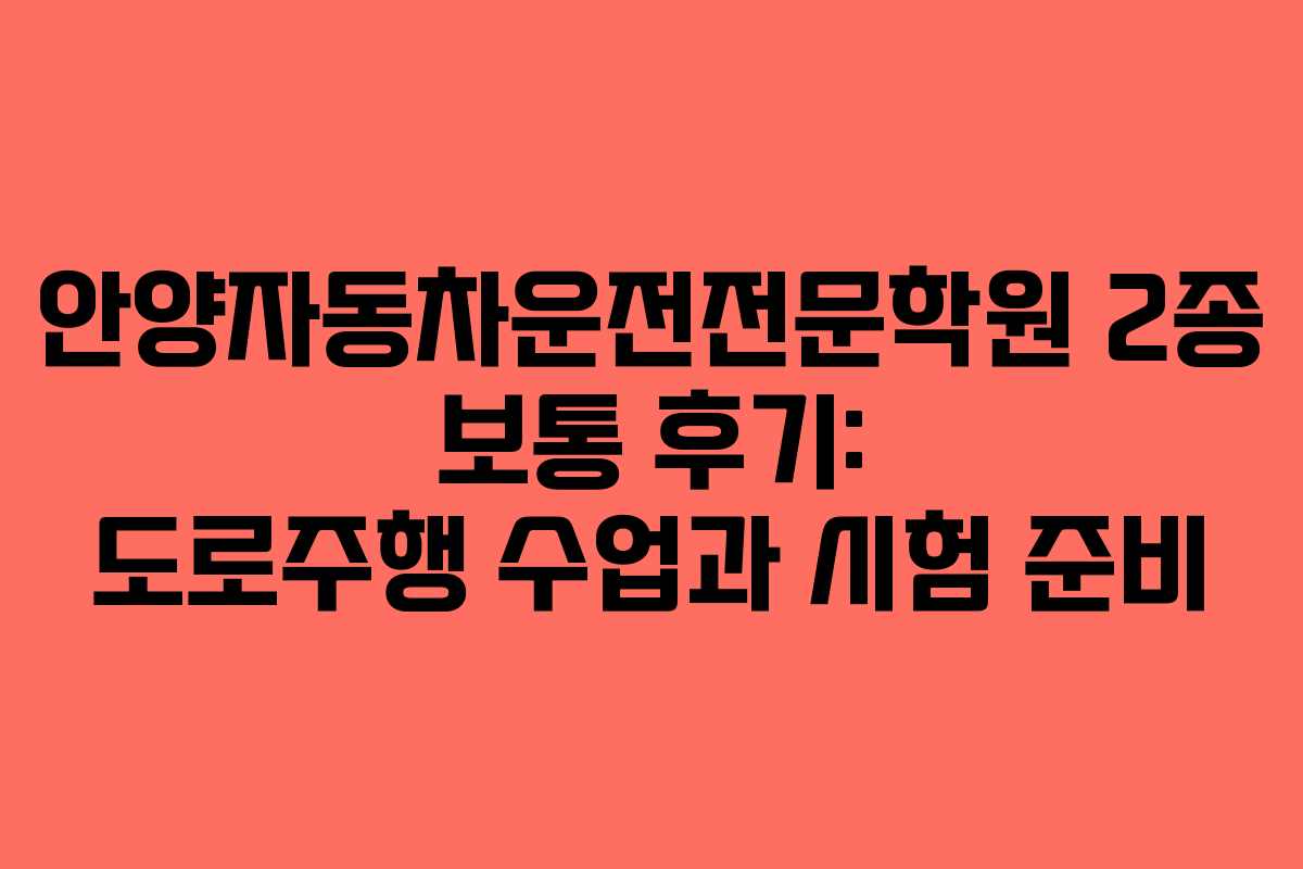 안양자동차운전전문학원 2종 보통 후기: 도로주행 수업과 시험 준비