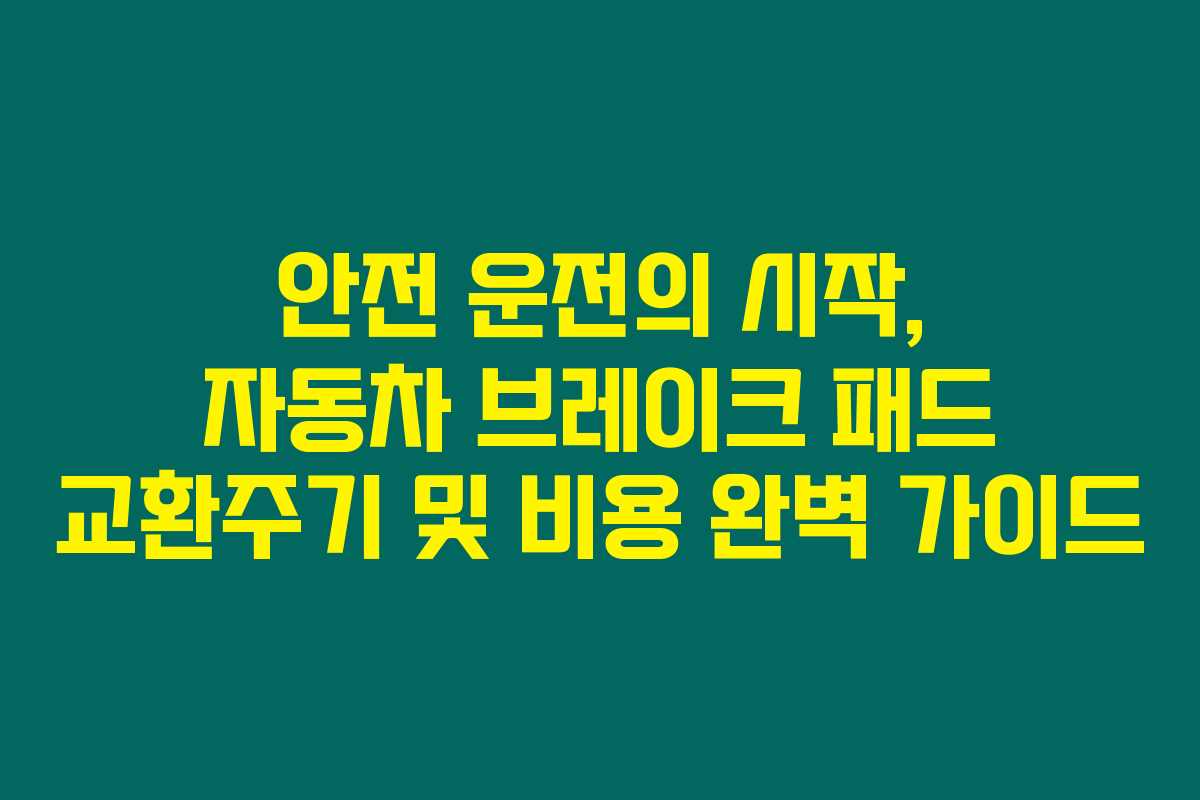 안전 운전의 시작, 자동차 브레이크 패드 교환주기 및 비용 완벽 가이드