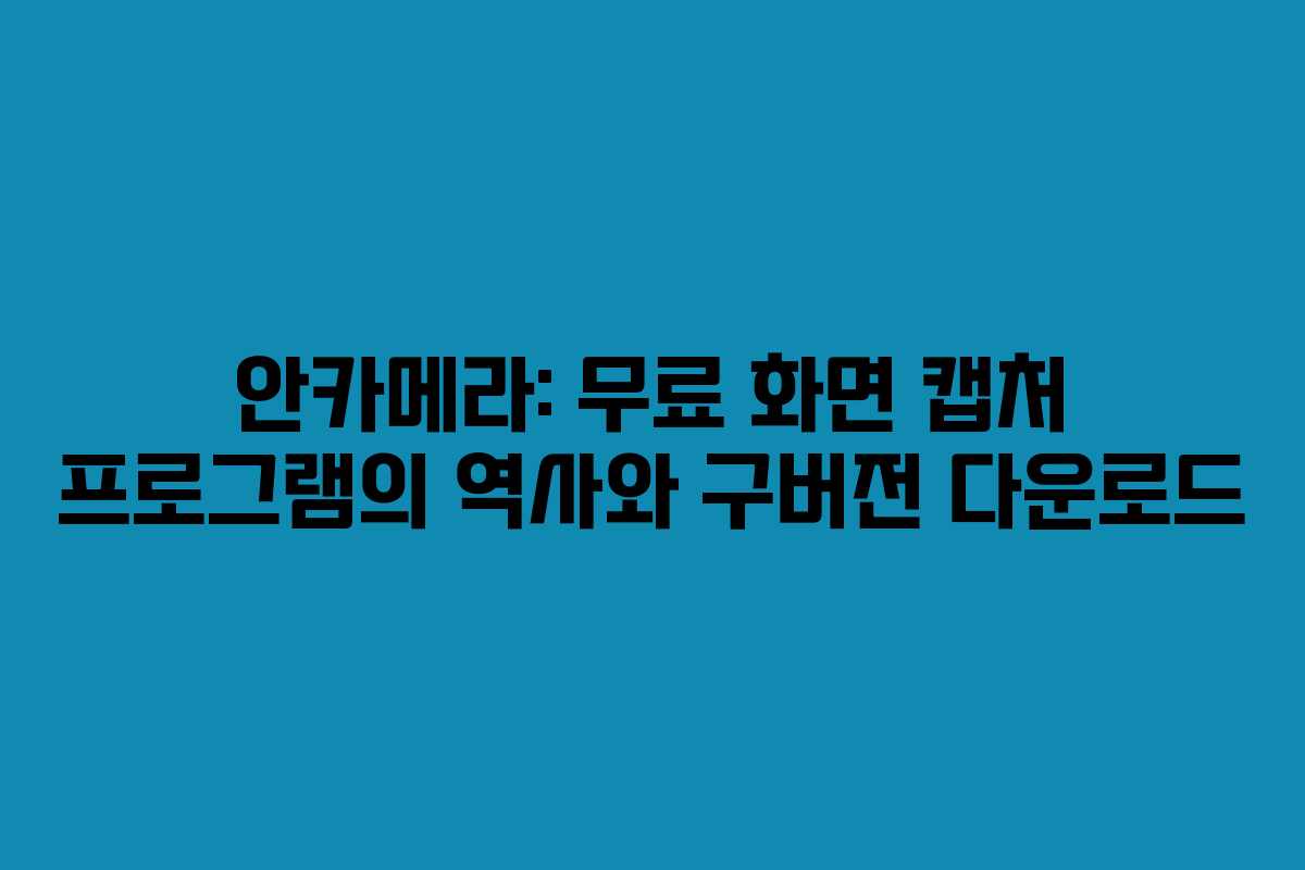 안카메라는 1998년에 처음 출시된 이래로 많은 사용자들에게 사랑받고 있는 무료 화면 캡처 프로그램입니다. 최신 버전인 안카메라 5까지 개발되었으며, 사용자들은 새로운 기능과 버그 수정이 포함된 업데이트를 기다리고 있습니다. 이번 글에서는 안카메라의 구버전과 그 특징에 대해 자세히 알아보겠습니다.