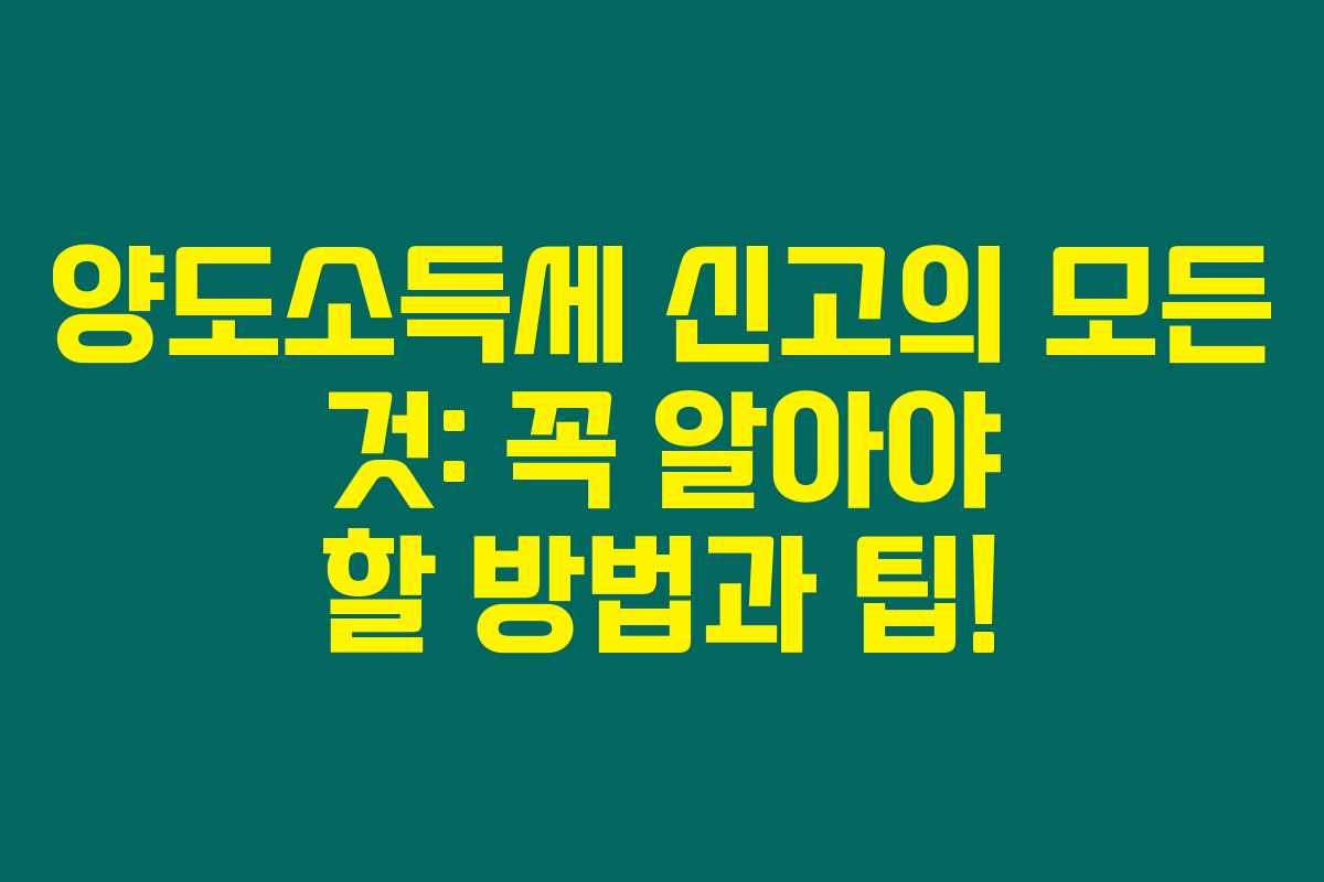 양도소득세란 개인이 부동산(토지, 건물)이나 주식 등을 양도하여 발생한 이익에 부과되는 세금이에요. 보통 부담이 되지만, 세법을 잘 알고 준비한다면 걱정할 필요 없답니다.