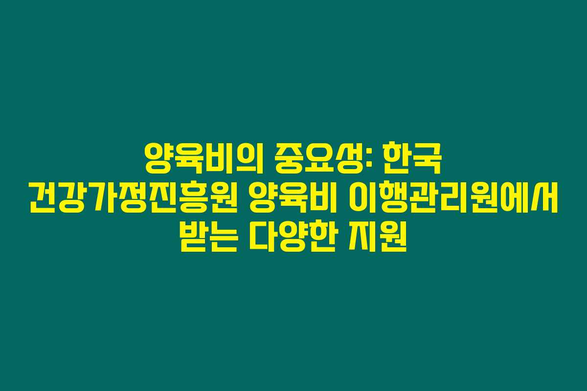 양육비 문제는 많은 가정에 있어 중요한 사항이지요. 한국 건강가정진흥원 양육비 이행관리원은 이 문제를 해결하기 위한 다양한 지원 프로그램을 운영하고 있습니다. 양육비 이행 지원 종합 서비스를 통해 필요한 도움을 받는 것이 중요하니까요. 여러분도 많은 도움이 되시길 바라며, 필요할 경우 꼭 방문해보세요.