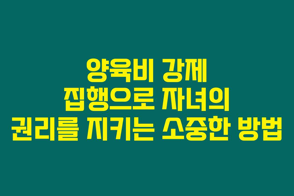 제가 직접 알아본 바로는, 양육비 강제 집행 절차는 자녀와 양육자의 권리를 지키기 위한 가장 효과적인 법적 방법입니다. 자녀의 미래와 행복을 지키기 위해서는 양육비를 받는 것이 필수적입니다. 하지만 상대방이 양육비를 지급하지 않을 경우, 어떻게 해야 할지 막막할 수 있습니다. 아래를 읽어보시면 양육비 강제 집행의 단계별 가이드를 통해 여러분의 권리를 지키는 방법을 알 수 있습니다.