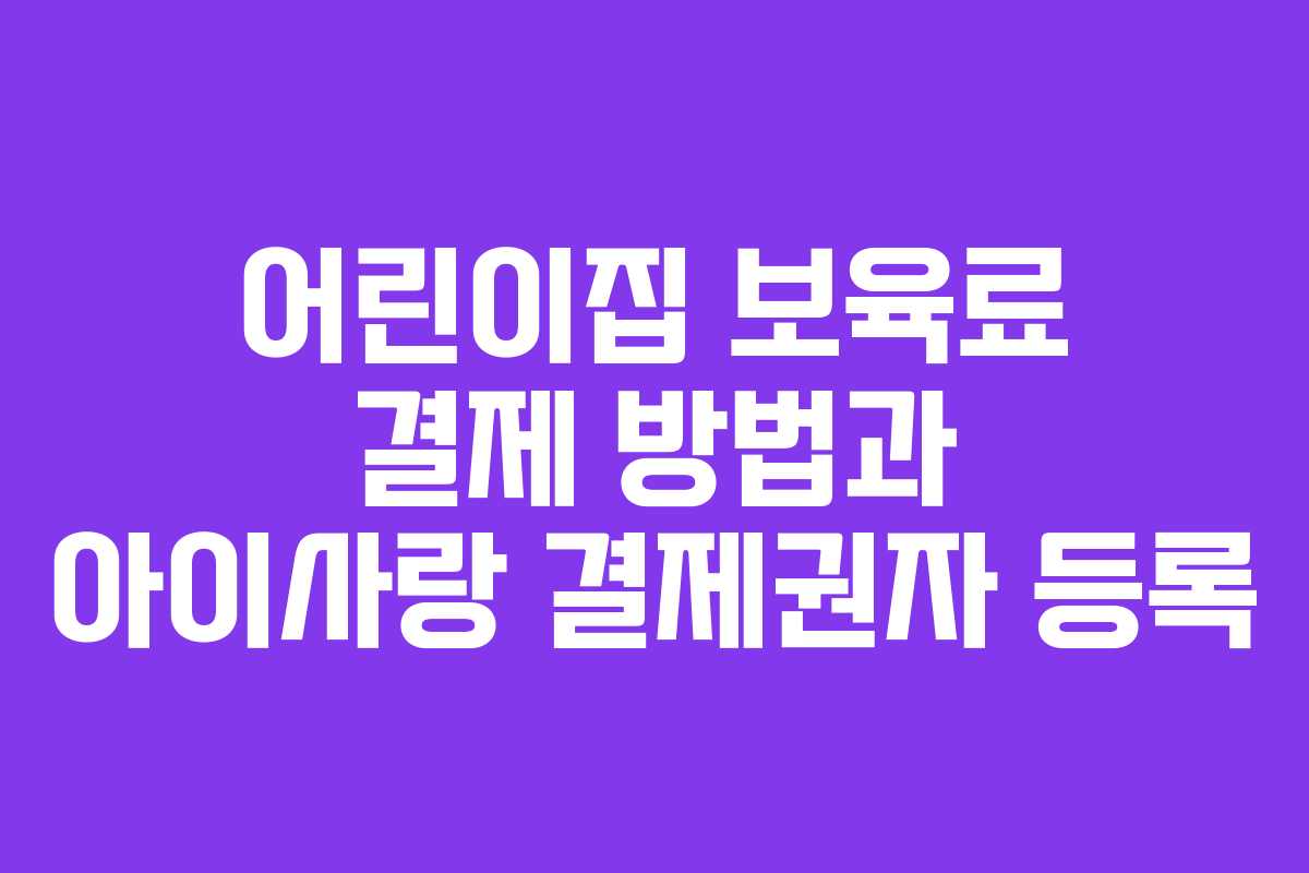 어린이집 보육료 결제는 부모님들에게 중요한 과정입니다. 이 글에서는 아이사랑 앱을 통한 보육료 결제 방법과 결제권자 등록 절차를 자세히 설명하겠습니다.