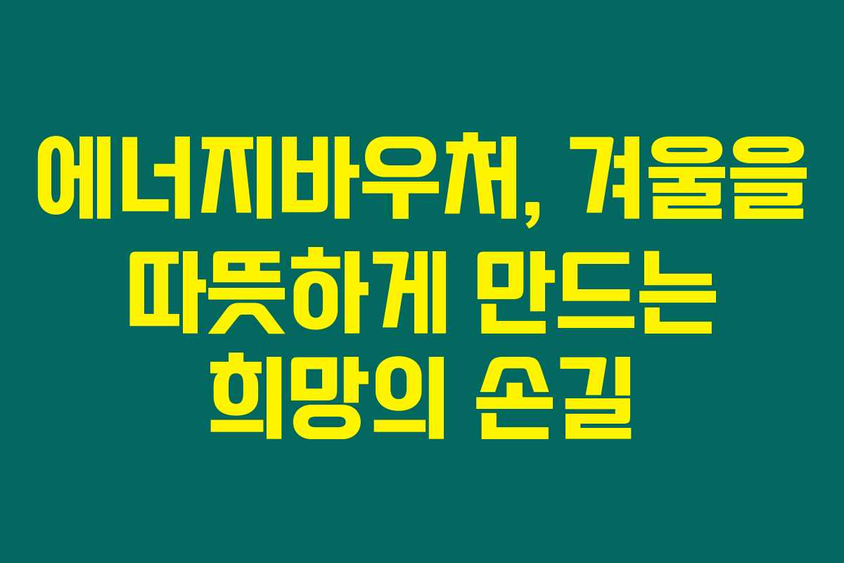 에너지바우처는 정부가 에너지 취약계층을 위해 제공하는 바우처입니다. 이를 통해 전기, 도시가스, 지역난방 등의 에너지를 구매할 수 있도록 지원하는 제동정이에요. 이로써, 겨울철 에너지 비용 부담이 경감되어 사람들은 더 따뜻하게 겨울을 지낼 수 있습니다.