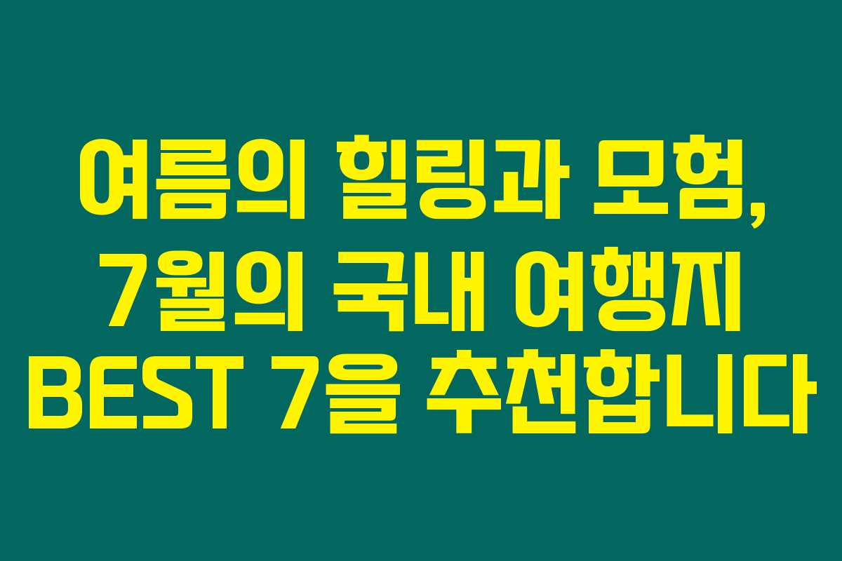 7월의 국내 여행지들은 계절의 매력을 느낄 수 있는 곳들로, 모두 인상 깊은 경험을 선사할 것입니다. 이미 방문하신 곳이나 다음 여행지를 고민하는 독자분들을 위해 다양한 정보를 공유했으니, 이번 여름에는 멋진 여행 계획을 세워 보시기 바랍니다.