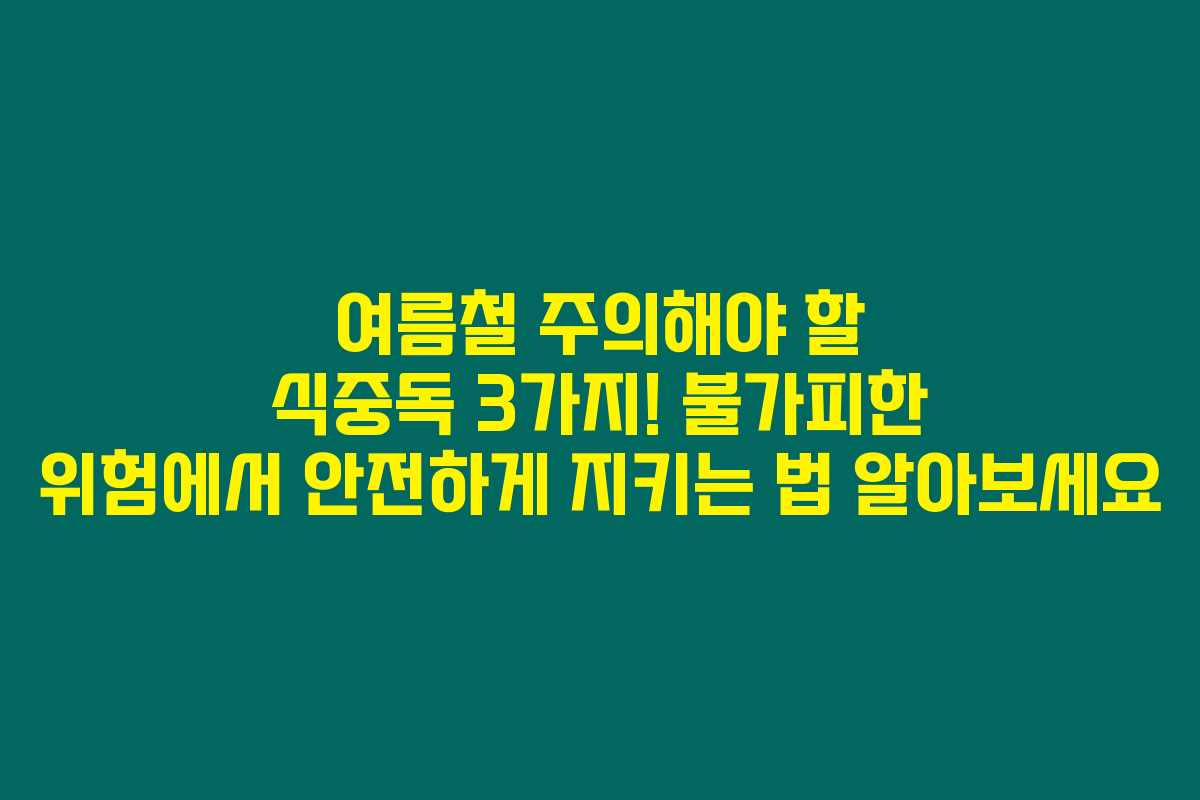 여름철에는 식중독이 급증하는 시기입니다. 특히 더운 날씨와 높은 습도로 인해 식품이 쉽게 상할 수 있어 각별한 주의가 필요해요. 이 키워드에 맞춰서, 여름철 주의해야 할 식중독의 종류를 알아보고 예방 방법까지 알아보겠습니다. 아래를 읽어보시면, 여름철 건강을 지키는 데 큰 도움이 될 거예요!