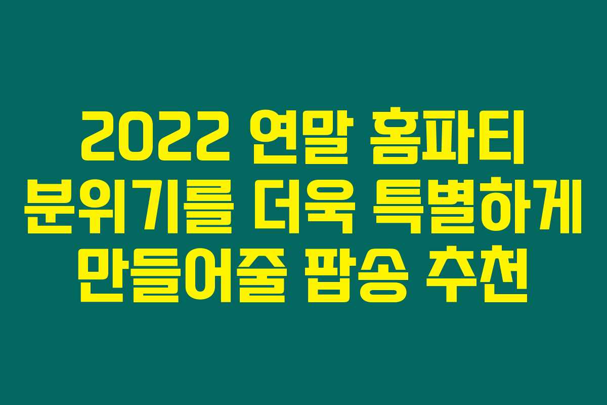 가까운 친구들과의 연말 홈파티를 더욱 즐겁고 감성적으로 만들어줄 음악이 필요하다면 주목하세요. 연말은 함께하는 시간이 더욱 소중해지는 시즌인데요. 그런 만큼 분위기를 살릴 수 있는 음악이 필수라고 생각해요. 2022년 연말을 맞아 홈파티에서 듣기 좋은 팝송을 추천해드리면서 여러분의 파티를 더욱 특별하게 만들어보아요.