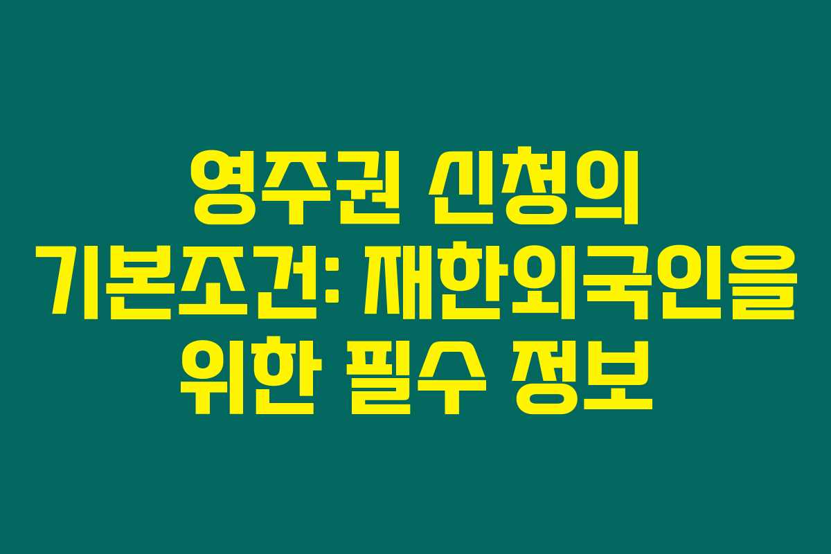 영주권 신청을 고려하고 계신가요? 영주권은 외국인에게 안정적이고 영구적인 체류 자격을 부여하여 다양한 혜택을 제공합니다. 하지만 신청 조건이 복잡하고 까다로운 만큼, 미리 잘 알아두셔야 해요. 아래를 읽어보시면 영주권 신청의 기본조건과 그 혜택에 대해 더욱 명확히 알 수 있습니다.