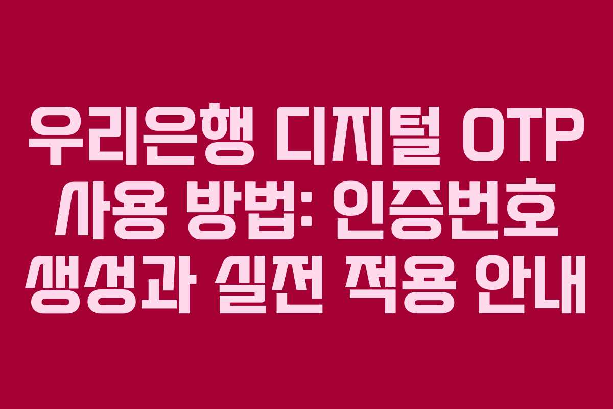 아래를 읽어보시면 우리은행 디지털 OTP의 발급 절차와 인증번호 생성 방식, 이체 한도 적용 방식, 푸시 알림 여부에 따른 이용 흐름을 한눈에 확인하실 수 있습니다.
