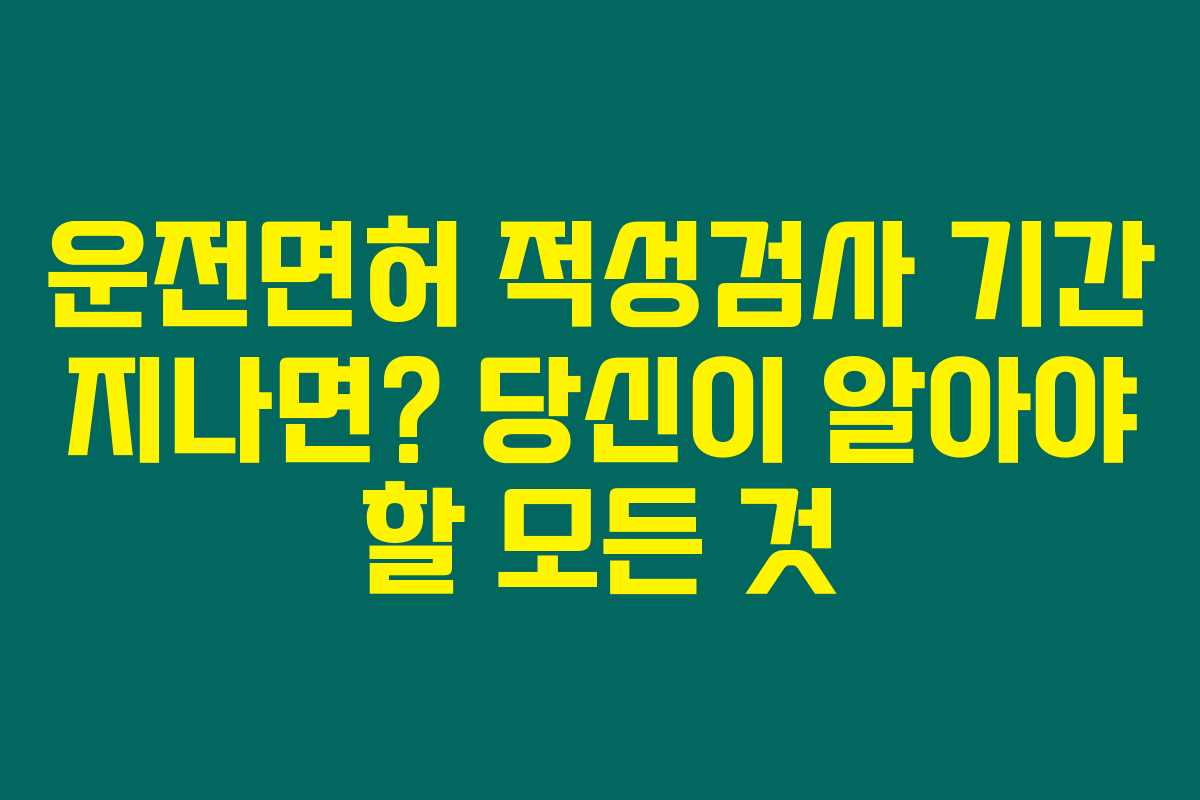 아쉽게도 적성검사 기간을 지나버리면 몇 가지 불이익이 발생해요. 제 경험에 따르면 정말 조심해야 할 부분이에요. 면허의 유효성이 떨어지기 때문에 차를 운전할 수 없게 될 수도 있죠.
