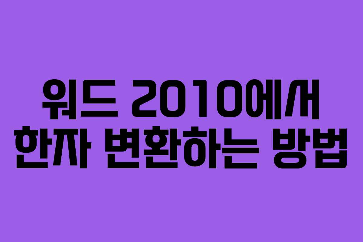 워드 2010에서는 한자를 손쉽게 변환하고 활용할 수 있는 다양한 기능을 제공합니다. 이 글에서는 한자 변환의 여러 방법과 그 사용법에 대해 자세히 설명하겠습니다.