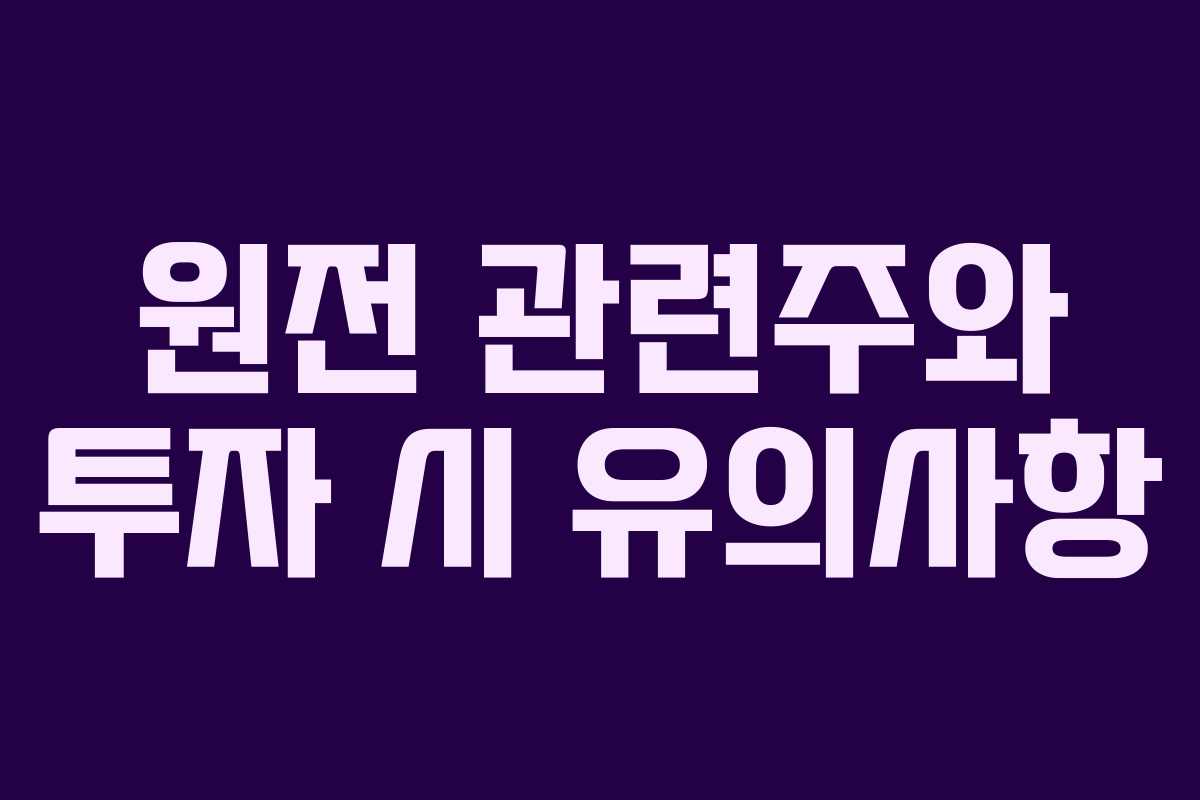 리스크 관리와 정부 정책 변화 모니터링이 필요합니다. 원전주에 투자하기 전 충분한 정보 수집이 중요합니다.