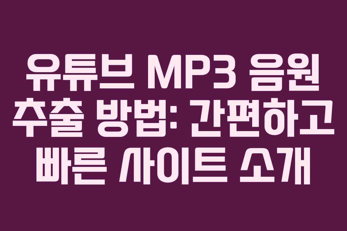 유튜브에서 제공하지 않는 음원, 예를 들어 커버곡이나 직캠 영상의 경우, MP3로 변환하고 싶을 때가 많습니다. 이러한 음원을 쉽게 추출할 수 있는 여러 사이트를 소개합니다. 아래 방법을 통해 원하는 유튜브 영상을 손쉽게 MP3 음원으로 변환해보세요.