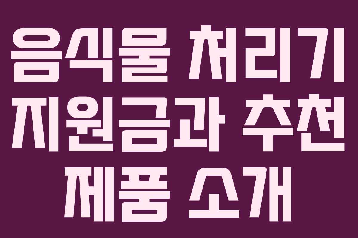 음식물 처리기를 구입할 때 정부에서 제공하는 지원금을 통해 경제적인 부담을 줄일 수 있습니다. 이번 글에서는 음식물 처리기 지원금에 대한 정보와 함께 추천 제품을 안내해 드리겠습니다.