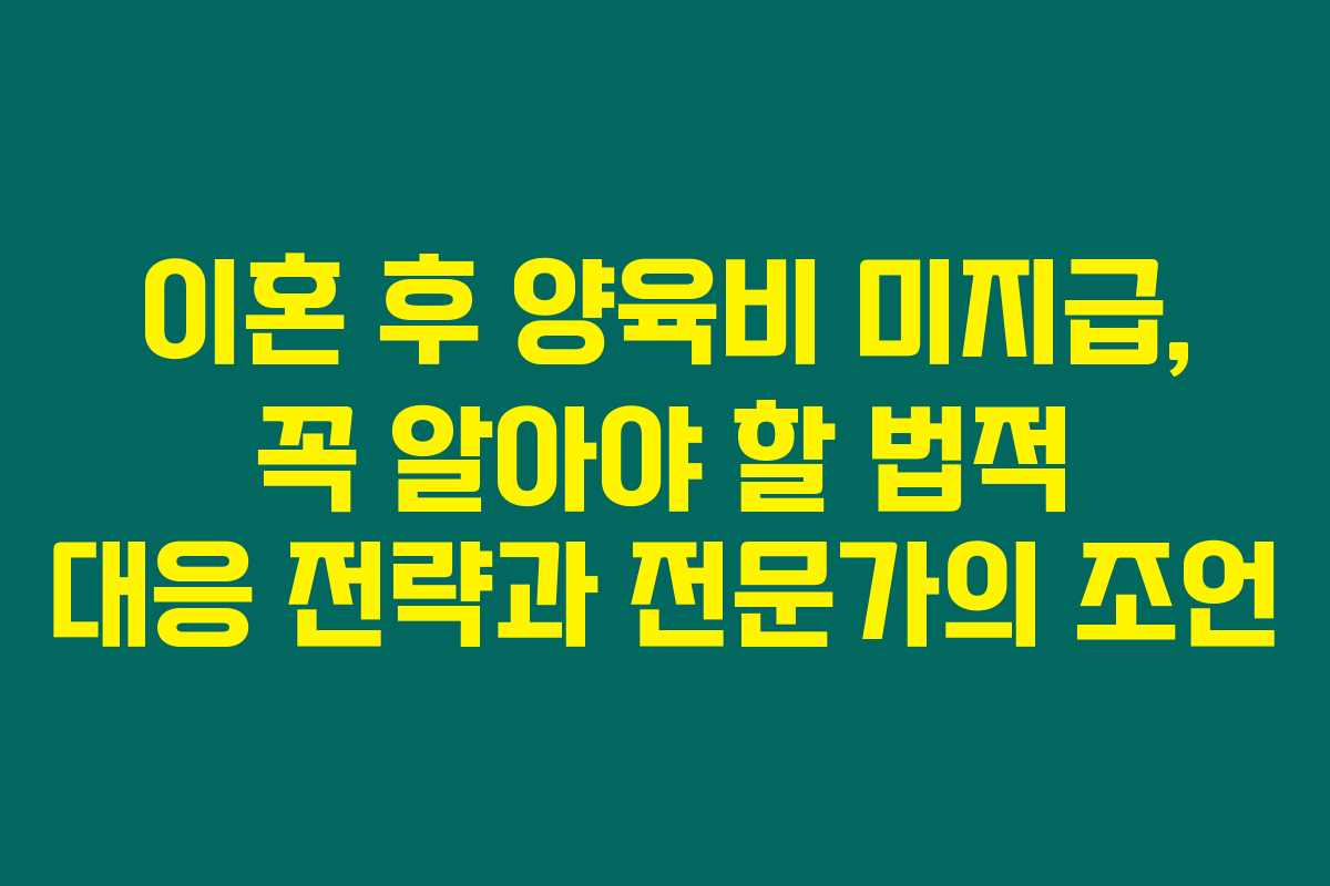 양육비 문제는 절대 혼자서 감당할 수 없는 일입니다. 정확한 방법으로 대응하고, 여러분의 권리를 보호하시길 바랍니다.