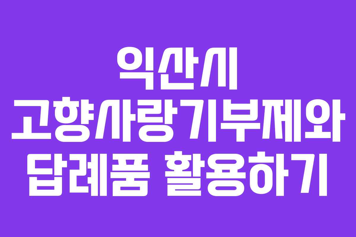 익산시 고향사랑기부제를 통해 지역에 기여하고, 맛있는 답례품을 받는 방법에 대해 소개합니다. 이 제도는 개인이 고향에 기부하고, 그 기부금으로 지역 주민의 복리에 기여하는 시스템입니다.