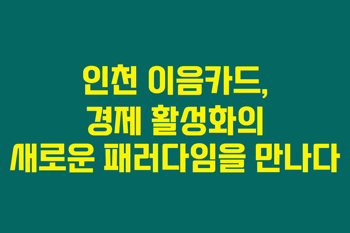 인천 이음카드를 고민하고 계신가요? 그렇다면 정말 주목하셔야 할 내용이 있어요. 인천의 경제를 활성화하기 위해 새롭게 도입된 이 카드에는 어떤 혜택이 숨겨져 있을까요? 아래를 읽어보시면 이음카드의 모든 특징과 소득공제 혜택에 대해 알아보실 수 있습니다.