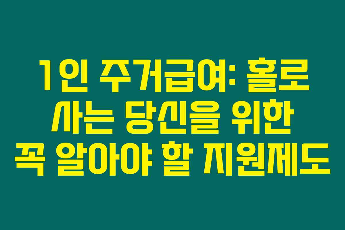 1인 주거급여에 대해 제가 직접 확인해본 결과, 1인 가구를 위한 주거 지원 제도가 다양하다는 것을 알게 되었어요. 이 제도는 경제적 어려움을 겪고 있는 청년층과 저소득층에게 큰 도움이 됩니다. 어떤 혜택이 있는지, 어떻게 신청하는지, 무엇을 주의해야 하는지 궁금하신 분들은 아래를 읽어보시면 유용한 정보가 가득하답니다.