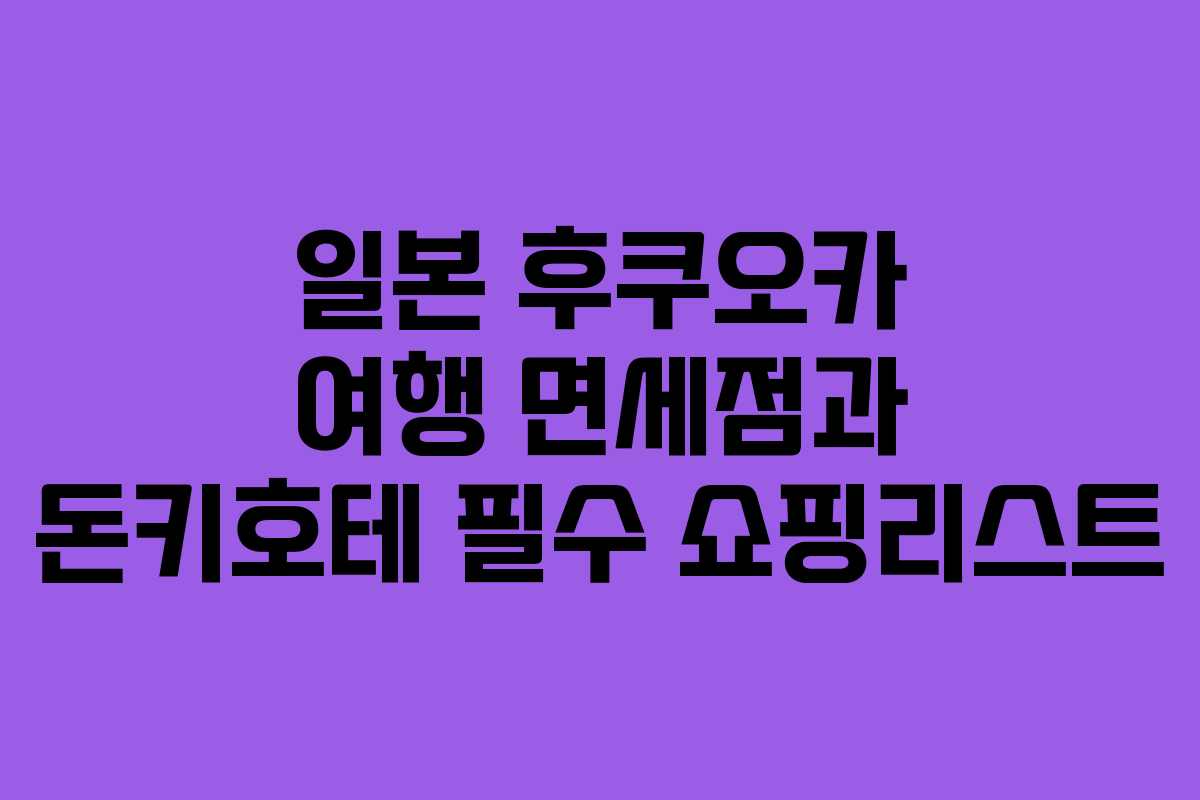 후쿠오카 여행을 계획하고 있다면, 면세점과 돈키호테에서 꼭 사야 할 쇼핑리스트를 알아두는 것이 좋습니다. 현지에서 인기 있는 과자와 필수 아이템을 추천합니다.