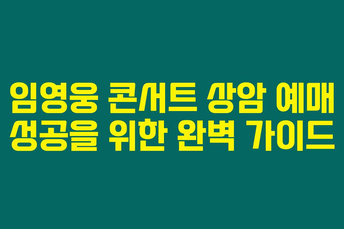 임영웅 콘서트 상암 예매 일정 및 성공 꿀팁을 통해 원하는 티켓을 꼭 손에 넣으세요! 여러분의 성공적인 예매를 응원합니다. 좋은 콘서트로 만나요!