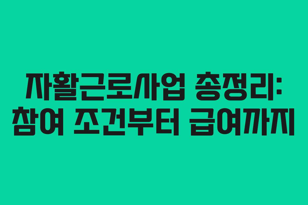 자활근로사업은 저소득층이 경제적 자립을 이루는 데 도움이 되는 중요한 제도입니다. 관심이 있으신 분들은 한국자활복지개발원 홈페이지나 보건복지상담센터를 통해 자세한 상담을 받아보시기 바랍니다.