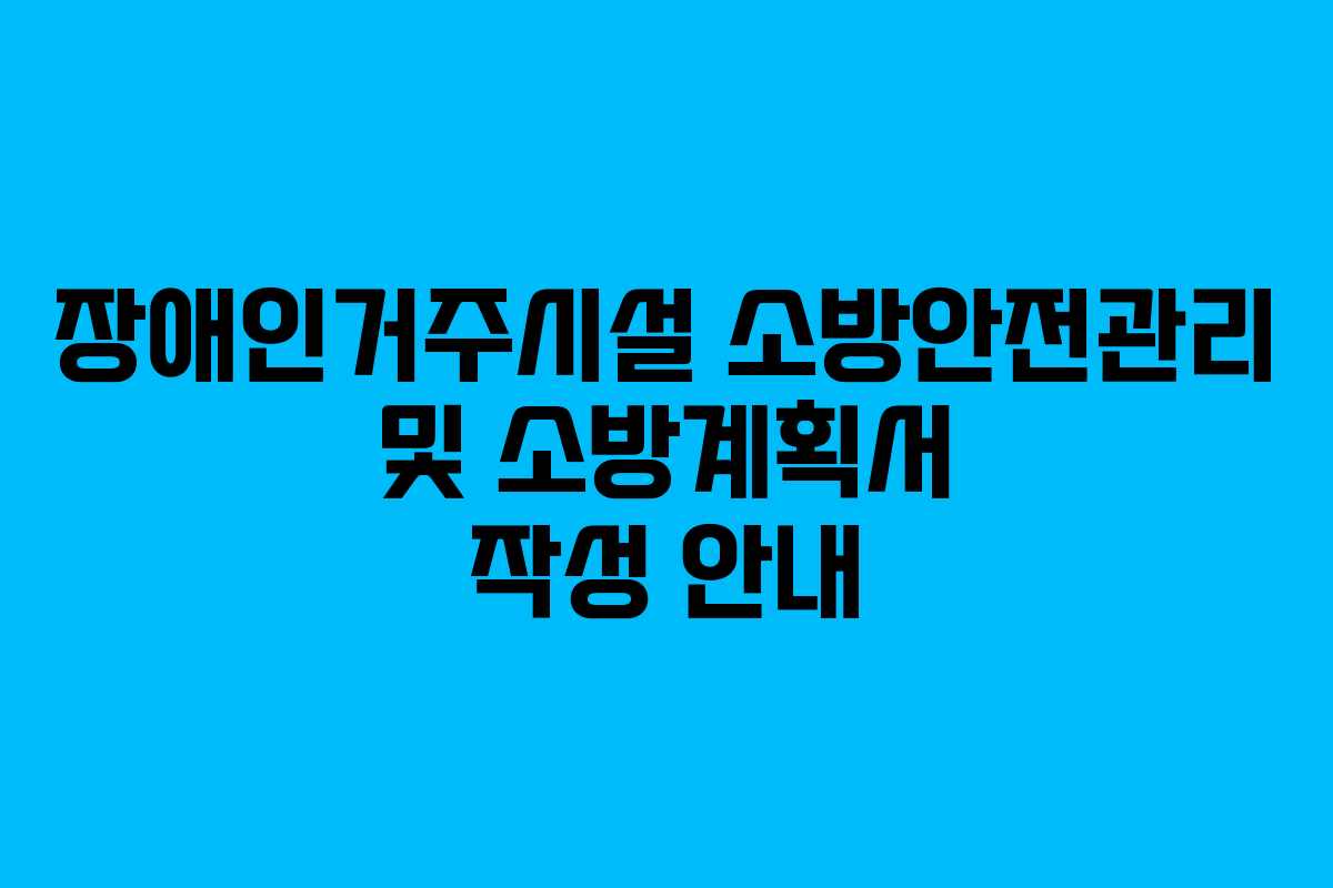 장애인거주시설의 안전관리는 매우 중요하며, 소방안전관리자는 이 과정에서 핵심적인 역할을 합니다. 이 글에서는 장애인거주시설에서 소방안전관리자를 선임하고 소방계획서를 작성하는 방법에 대해 설명하겠습니다.