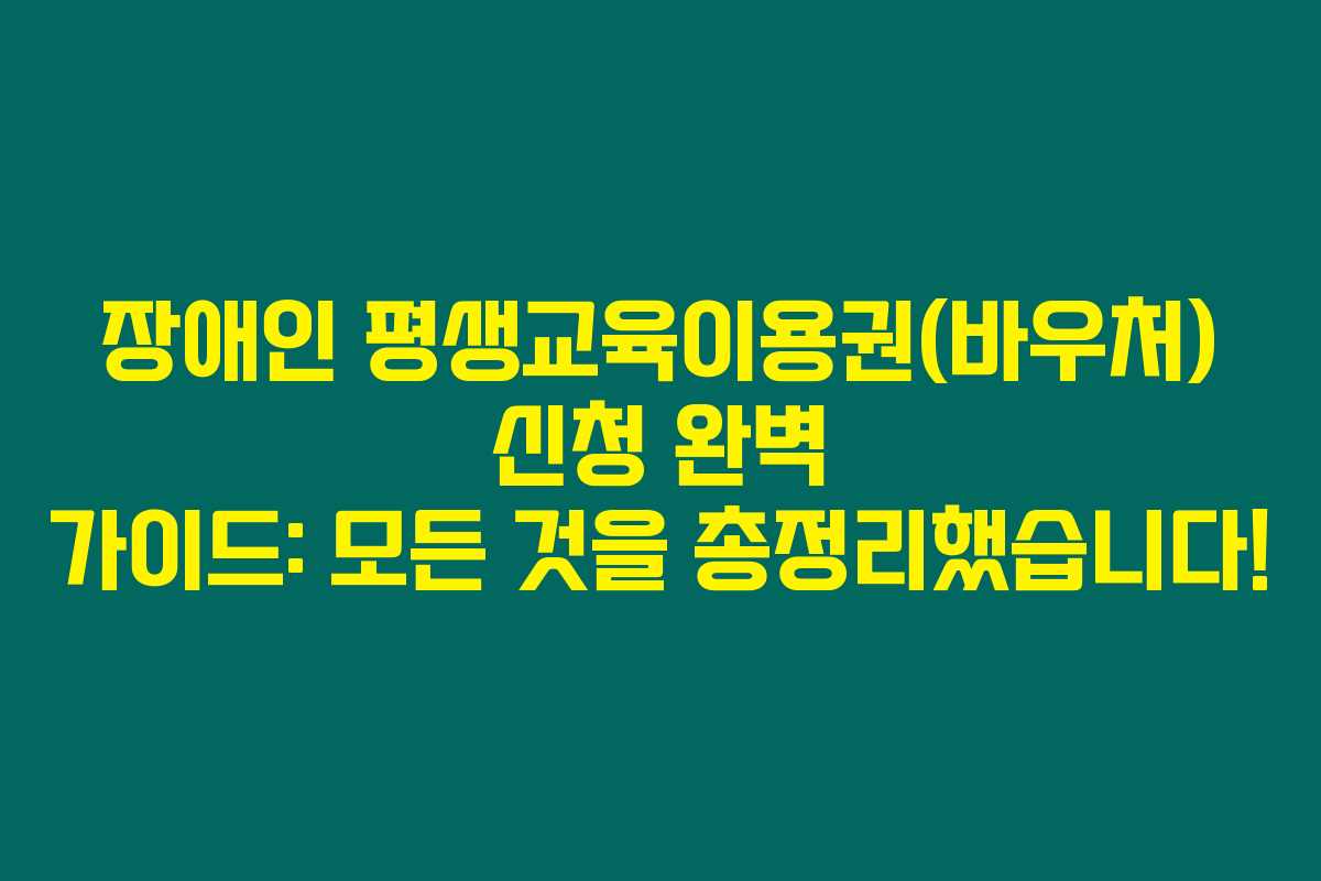 장애인 평생교육이용권, 정말 유익한 제도이지요? 위에서 설명한 다양한 정보들을 참고하시고, 필요한 분들은 꼭 신청해보세요! 여러 가지 교육 기회를 통해 더 많은 가능성을 가질 수 있으니까요.