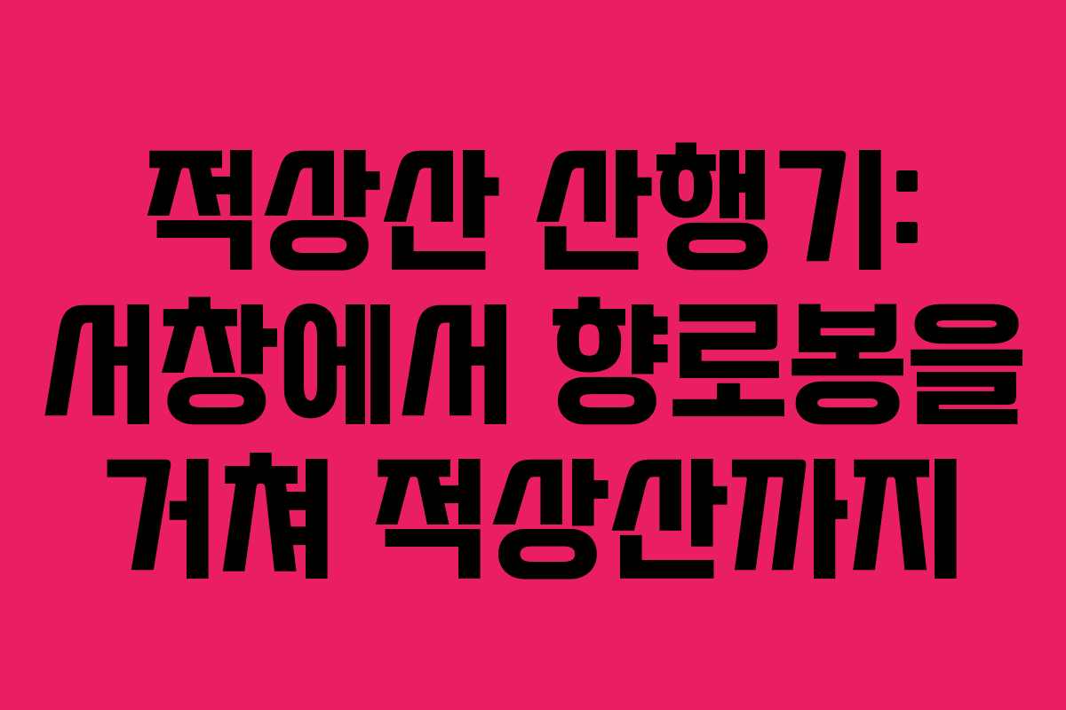 적상산은 전라북도 무주군에 위치한 아름다운 산으로, 특히 가을에는 붉은 단풍으로 장관을 이루는 곳입니다. 그러나 겨울철에도 그 매력을 느낄 수 있는 산행이 가능하여, 이번에는 서창탐방센터를 출발하여 향로봉과 적상산을 왕복하는 일정을 살펴보겠습니다.