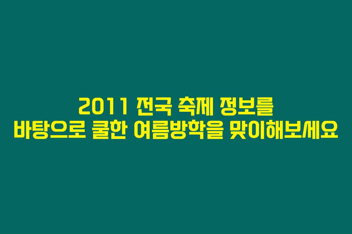 여름방학이 다가오는데 꼭 챙겨야 할 특별한 일정이 없으신가요? 여러분을 위한 보물 같은 정보를 가져왔어요! 2011년에 진행된 전국의 다양한 축제 정보를 소개할게요. 이 축제들은 가족과 친구들과 즐길 수 있는 멋진 경험을 제공하니까요. 여름의 축제를 통해 새로운 기억을 쌓아보세요!