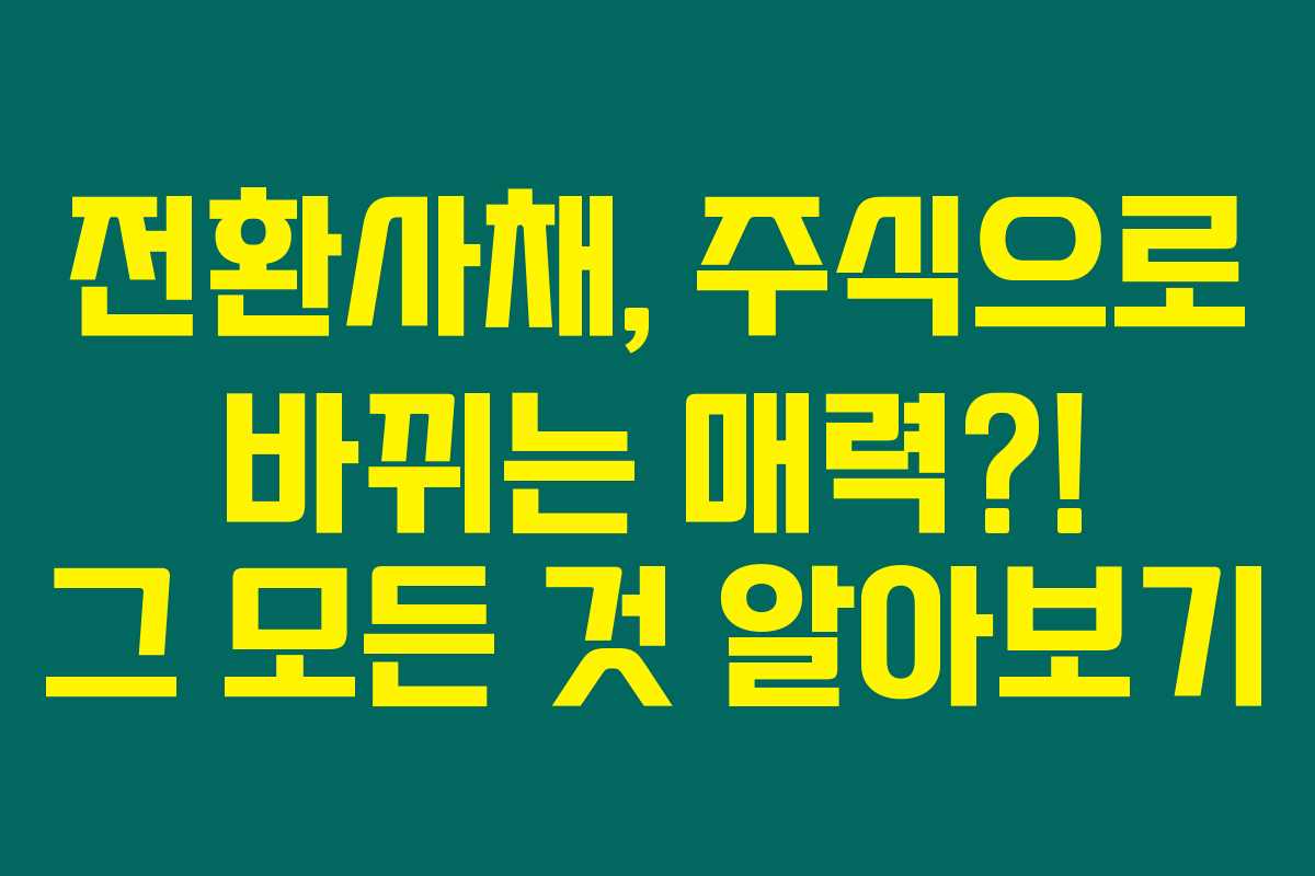전환사채는 복잡한 금융 상품이지만, 그 이점을 잘 활용하면 안정적인 수익을 만들어낼 수 있는 투자 수단이 됩니다. 전환사채 발행 소식이 단기적으로 주가에 영향을 미칠 수 있지만, 장기적인 투자 관점에서 제대로 분석하고 준비한다면 좋은 결과를 가져올 수 있을 거예요. 앞으로도 전환사채에 대해서 더욱 관심을 가지고 지켜보아요!