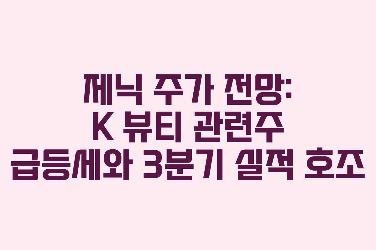 최근 K-뷰티 관련주들이 급등세를 보이며 투자자들의 주목을 받고 있는 가운데, 제닉의 주가 전망에 대한 관심도 높아지고 있습니다. 이번 글에서는 제닉의 주가 흐름, 3분기 실적 분석, K-뷰티 시장 현황, 투자 전략 등을 다루어 보겠습니다.