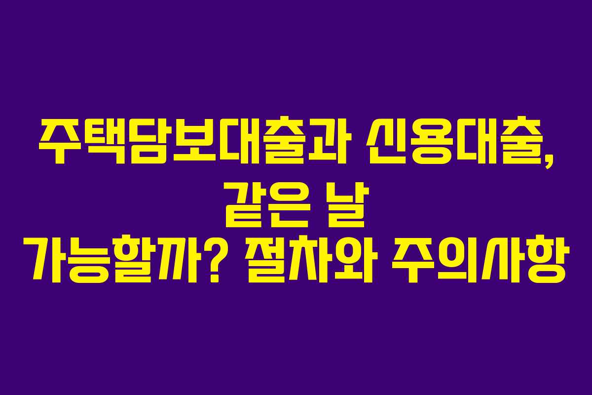 주택담보대출과 신용대출은 두 가지 다른 대출 형태로, 각각의 특성과 절차를 이해하는 것이 중요합니다. 이 글에서는 두 대출을 동시에 받는 것이 가능하는지, 절차와 주의사항을 살펴보겠습니다.