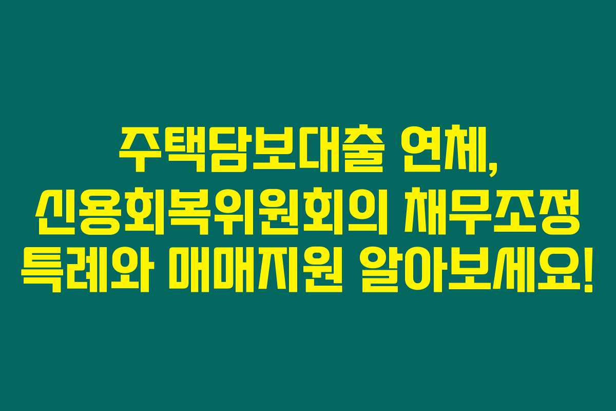 제가 알아본 바로는 주택담보대출을 연체하고 계신 분들에게 신용회복위원회에서 제공하는 여러 가지 지원 프로그램이 있습니다. 특히 채무조정 특례와 담보주택 매매지원 프로그램은 연체로 인해 어려움을 겪고 있는 분들에게 큰 도움이 될 수 있는 제도인데요. 아래를 읽어보시면 이 제도의 구체적인 신청자격과 지원내용, 필요한 서류 및 신청방법에 대해 자세히 알 수 있습니다.