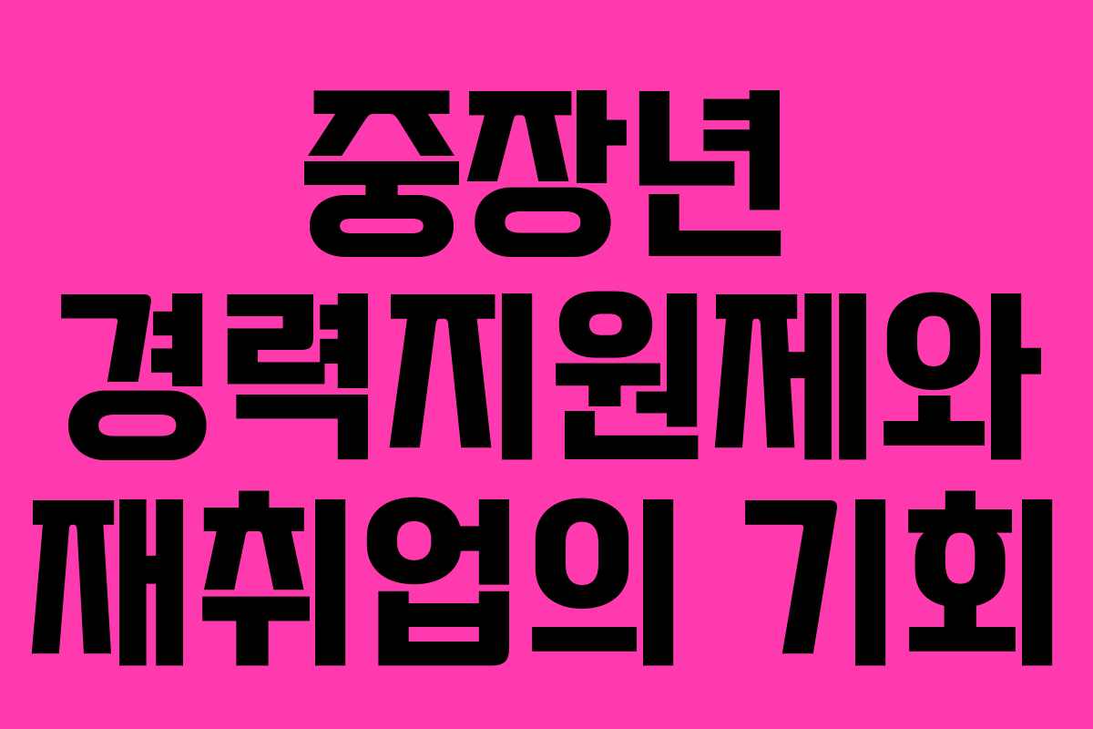 중장년 경력지원제는 50세 이상의 중장년층이 새로운 분야에 진입하고 재취업을 돕기 위한 정부의 중요한 지원 제도입니다. 이번 글에서는 이 제도의 주요 내용과 혜택, 신청 방법 등을 상세히 살펴보겠습니다.