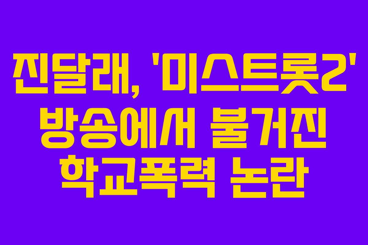최근 방송된 TV조선의 ‘내일은 미스트롯2’에서 진달래에 대한 논란이 일며 시청자들의 원성이 이어지고 있습니다. 이 방송은 진달래의 학교폭력 의혹과 관련된 장면을 담고 있어, 많은 이들의 논란을 일으켰습니다.
