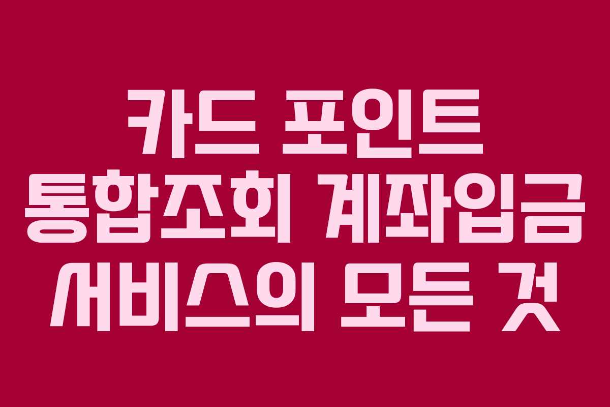 2021년부터 시작된 카드 포인트 통합조회 및 계좌입금 서비스는 일반인들에게 큰 도움이 되는 소소한 서비스로 자리 잡았습니다. 이 서비스는 카드 포인트를 효율적으로 활용할 수 있는 방법을 제공하여, 많은 사람들이 미처 사용하지 못했던 포인트를 손쉽게 확인하고 현금처럼 이용할 수 있게 해줍니다.
