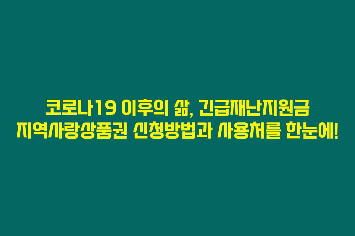 제가 알아본 바로는, 많은 분들이 코로나19로 어려운 시기를 겪고 있는 요즘, 긴급재난지원금과 지역사랑상품권에 대한 정보를 찾고 있습니다. 긴급재난지원금은 경제 위기 속에서 우리 국민의 생활을 안정시키기 위해 정부가 마련한 지원 제도입니다. 아래를 읽어보시면, 지역사랑상품권의 신청이 방법과 사용처에 대한 정보들을 종합적으로 확인할 수 있을 거예요.