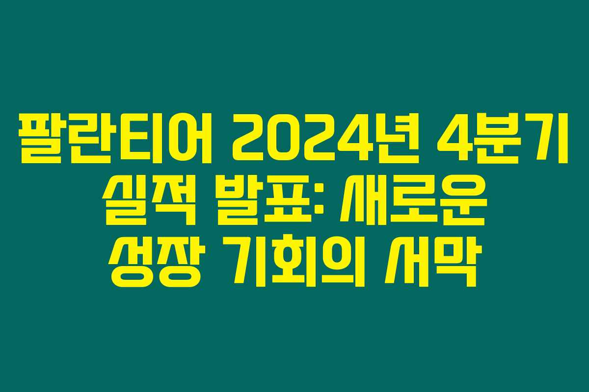 팔란티어의 2024년 4분기 실적 발표는 데이터 분석 및 생성 AI 시장에서의 중요성을 단적으로 보여주는 사례로서, 회사의 미래에 대한 긍정적인 전망을 던져주고 있답니다. 지속적으로 진화하는 AI 시장 속에서 팔란티어가 어떻게 발전해 나갈지 기대가 되네요.