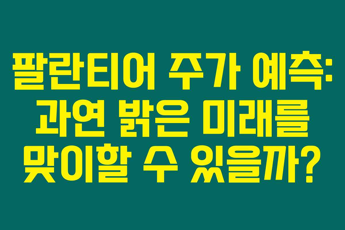 팔란티어 주가 예측: 과연 밝은 미래를 맞이할 수 있을까?