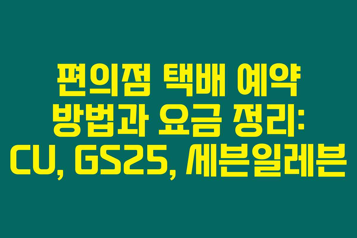 빠르게 발송해야 할 물건이 생길 때, 편의점 택배가 정말 유용하죠? 최근에는 온라인 거래가 활발해지면서 편의점을 통한 택배 이용이 점점 더 많아지고 있습니다. 편의점은 우리 주변 어디에나 있어 이용하기 간편하고, 보통 1~2일 내에 도착해 개인에게 매우 적합하답니다. 아래를 읽어보시면 CU, GS25, 세븐일레븐을 통한 편의점 택배 예약 방법과 요금을 한눈에 알아보실 수 있어요.