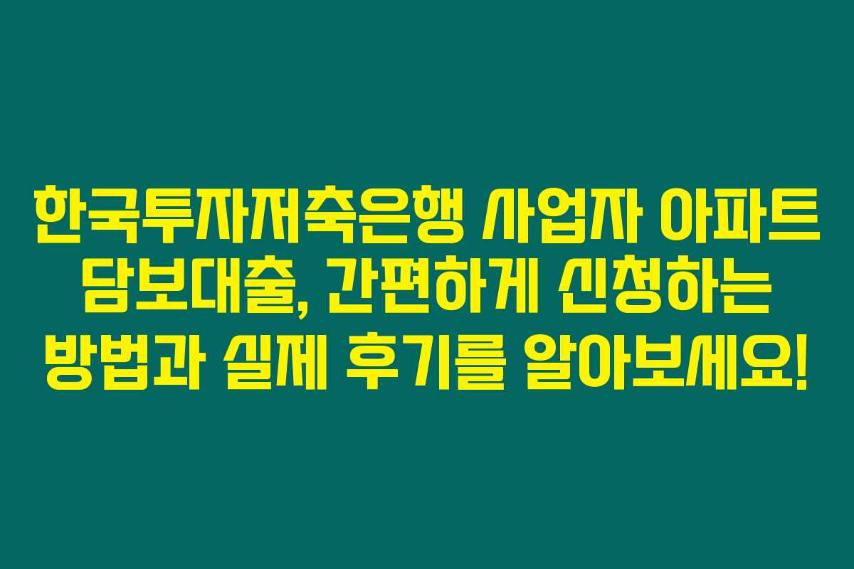 한국투자저축은행 사업자 아파트 담보대출, 간편하게 신청하는 방법과 실제 후기를 알아보세요!