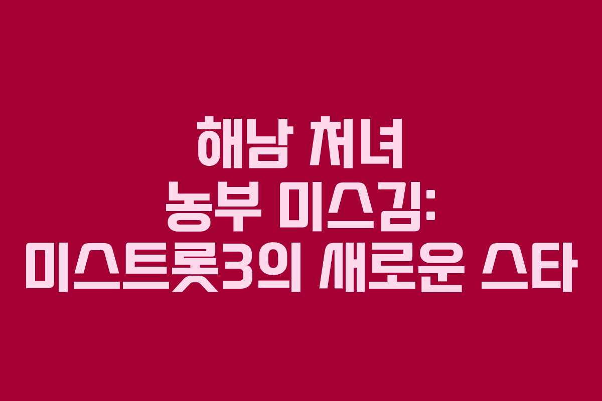 미스트롯3의 인기가 지속적으로 상승하면서, 참가자들에 대한 관심도 함께 높아지고 있습니다. 특히 ‘해남 처녀 농부 미스김’은 미스트롯3에 등장하기 전까지는 일반인으로 알려져 있었습니다. 그녀는 ‘여름에는 꿀을 따고, 겨울에는 배추를 따는 농부’라고 자신을 소개하며, 많은 이들의 이목을 집중시키고 있습니다. 이번 글에서는 미스김의 프로필, 미스트롯3에서의 활약, 그리고 그녀의 농사 생활에 대해 알아보겠습니다.