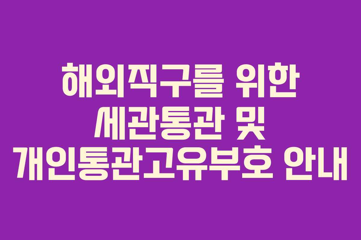 최근 해외직구가 점점 더 보편화되면서 많은 사람들이 해외 물품을 구매하고 있습니다. 그러나 해외 직구를 할 때 반드시 알아야 할 정보가 바로 세관통관과 개인통관고유부호입니다. 이 글에서는 이 두 가지에 대해 자세히 알아보겠습니다.