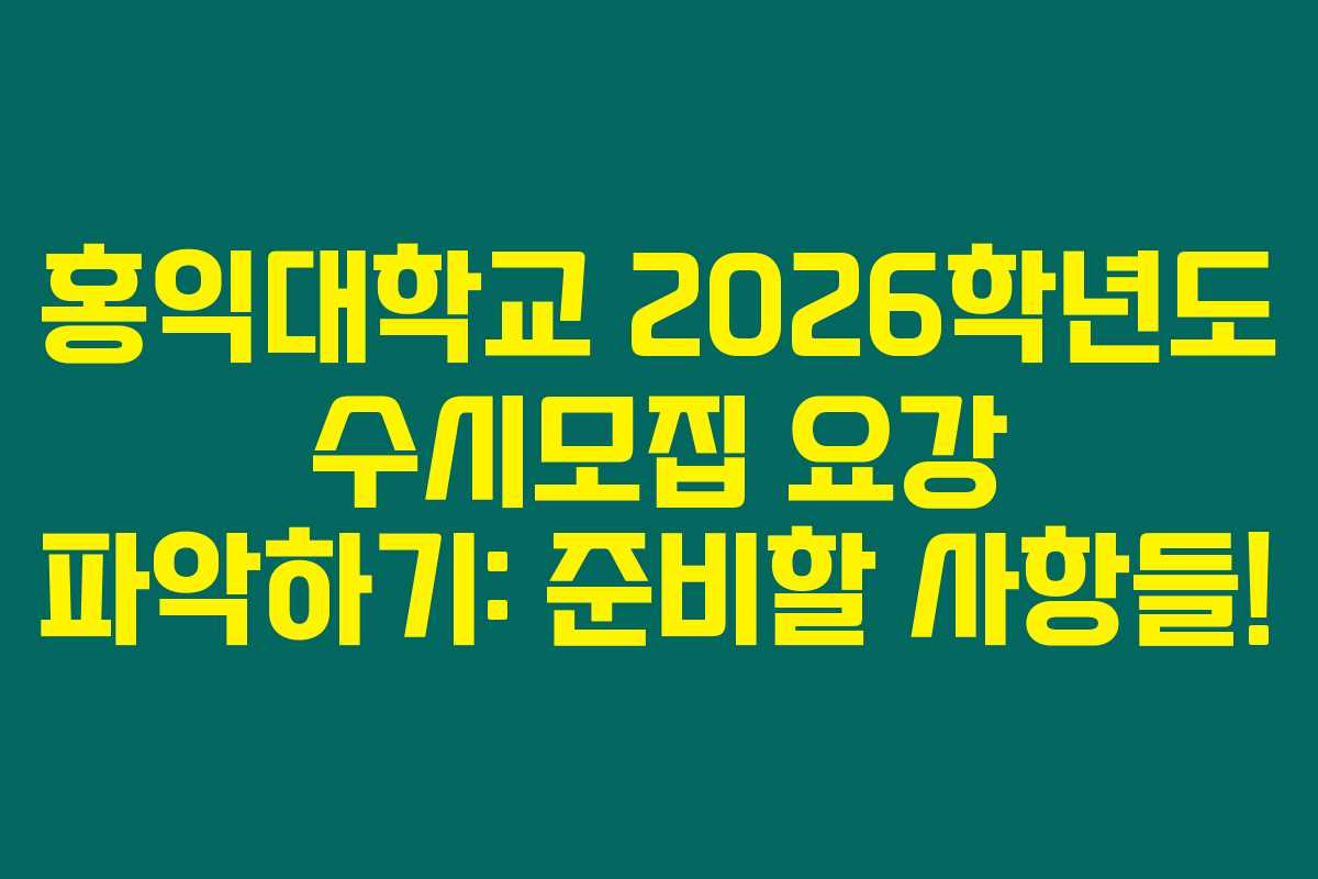홍익대학교 2026학년도 수시모집 요강 파악하기: 준비할 사항들!