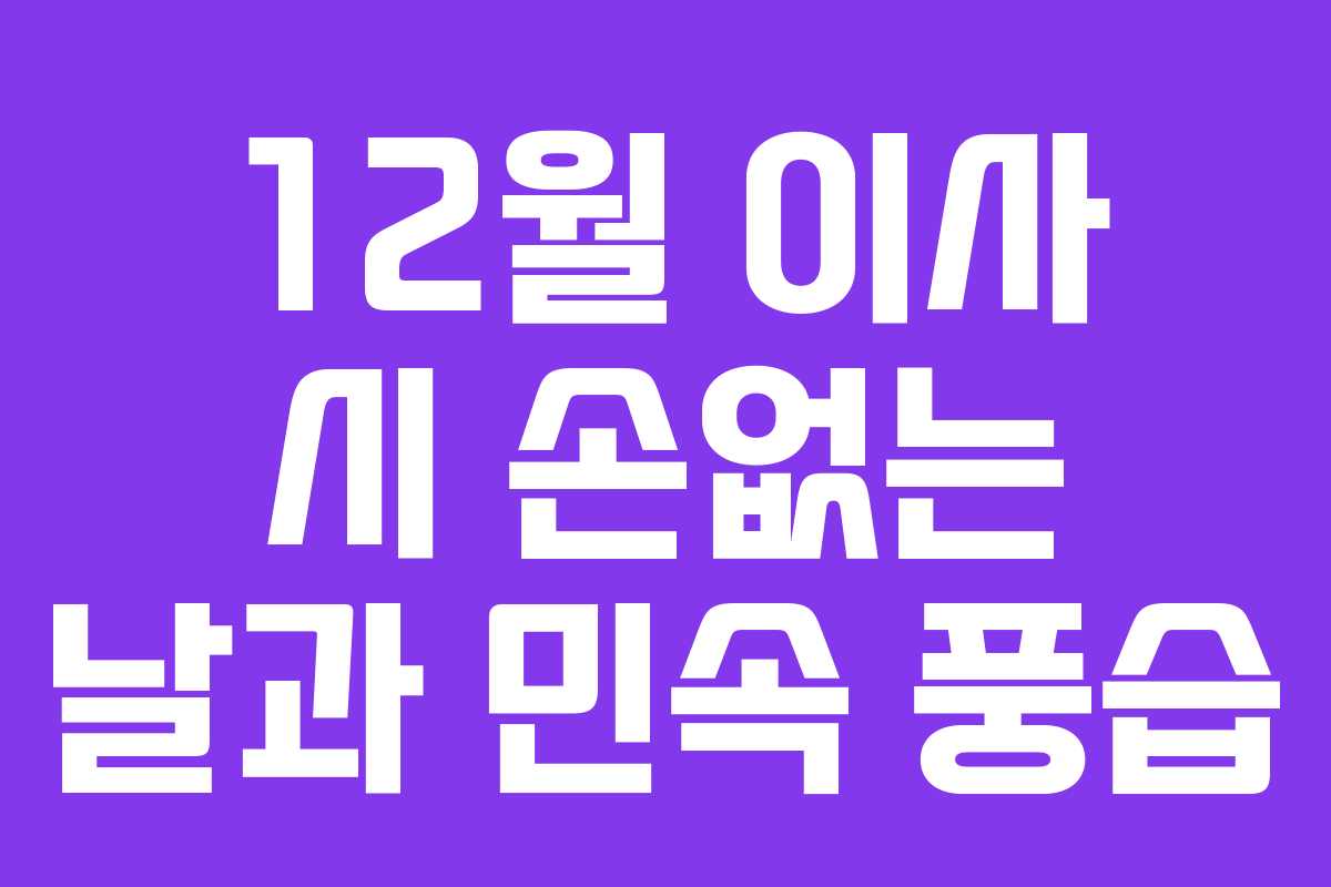 이사할 때 고려해야 할 중요한 요소 중 하나가 바로 ‘손없는 날’입니다. 이 포스팅에서는 12월의 손없는 날을 확인하고, 만약 이 날에 이사를 하지 못할 경우의 대처 방법에 대해 알아보겠습니다.