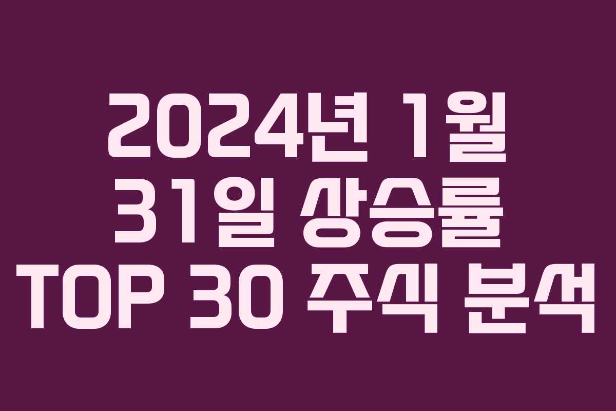 2024년 1월 31일 기준으로 상승률이 가장 높은 TOP 30 주식을 정리하였습니다. 이 글에서는 주요 상승 종목과 그 배경을 살펴보겠습니다.